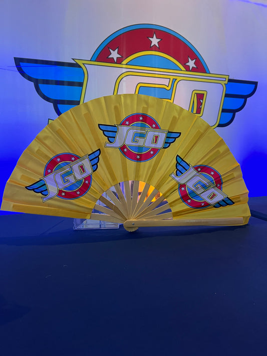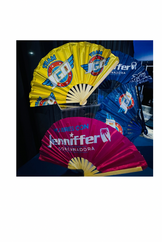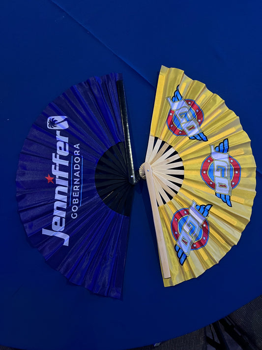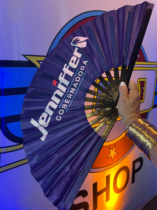 JENNIFFER GOBERNADORA ABANICO AZUL DE MANO